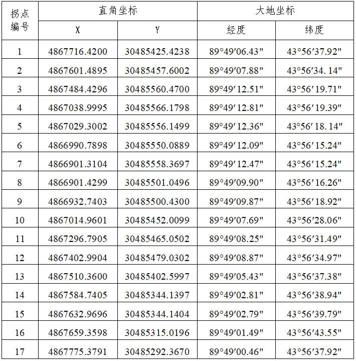 出让采矿权范围拐点坐标(CGCS2000坐标系):
