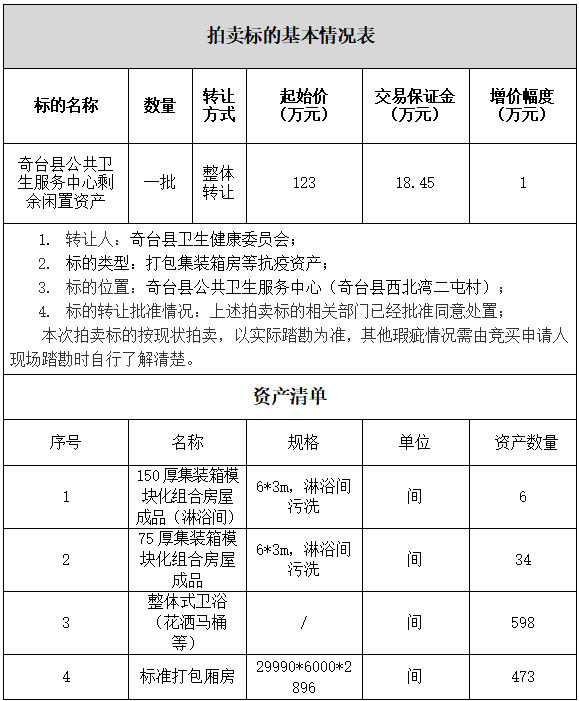 受相关部门委托,新疆国源土地矿产资源交易中心将于2025年10月20日16:00(北京时间)举行奇台县公共卫生服务中心剩余闲置资产拍卖会,现将相关事项公告如下: