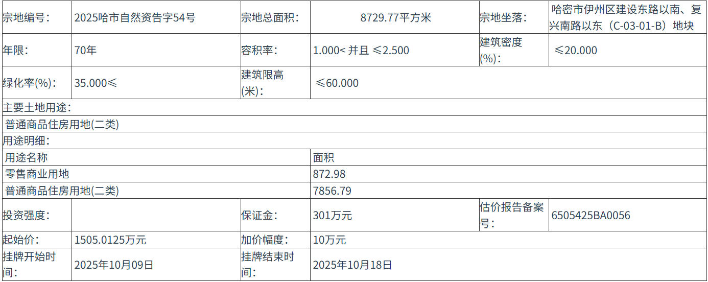 2025哈市自然资告字54号 号地块:2025年10月09日 10时00分 至 2025年10月18日 16时00分;