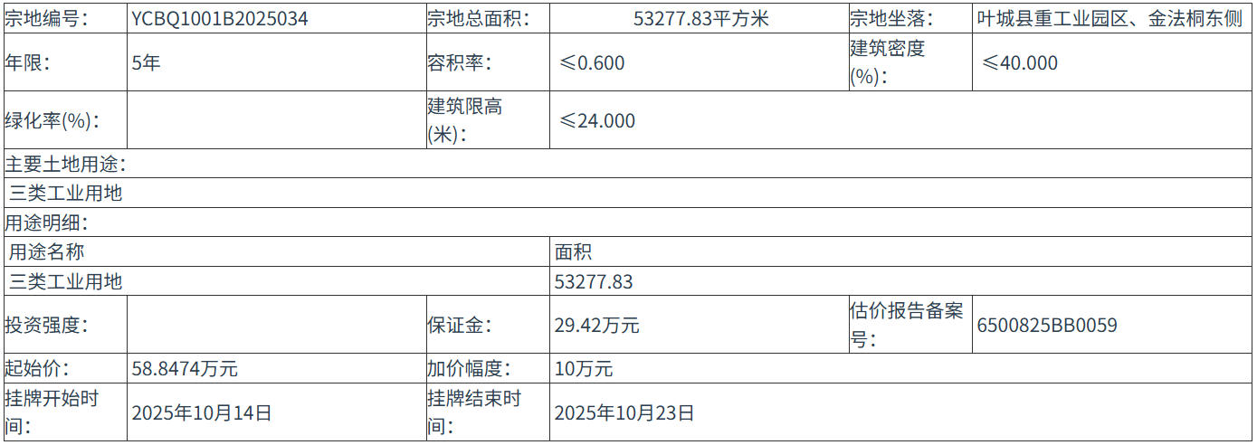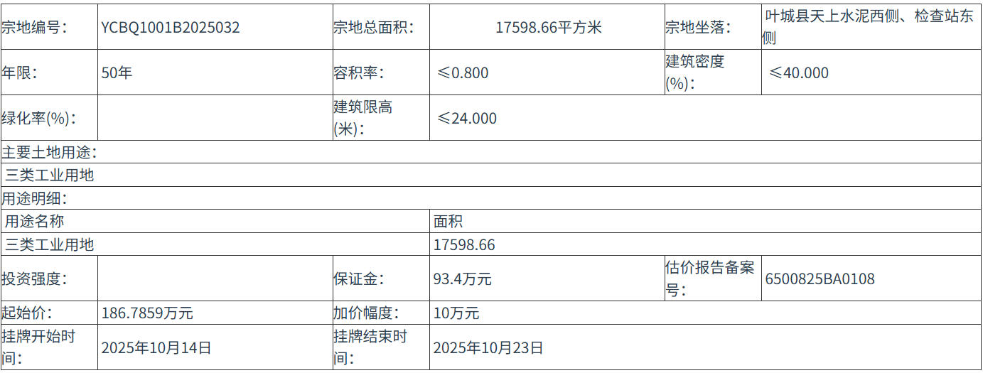 YCBQ1001B2025034 号地块:2025年10月14日 12时00分 至 2025年10月23日 18时00分;