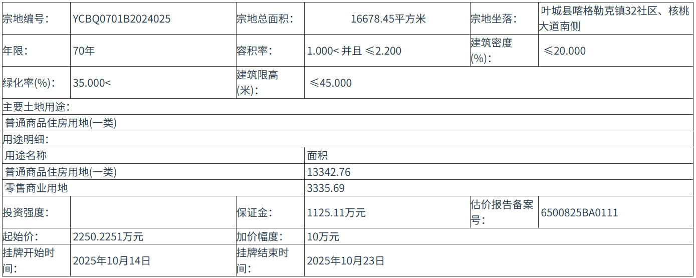 YCBQ0701B2024025 号地块:2025年10月14日 12时00分 至 2025年10月23日 18时00分;