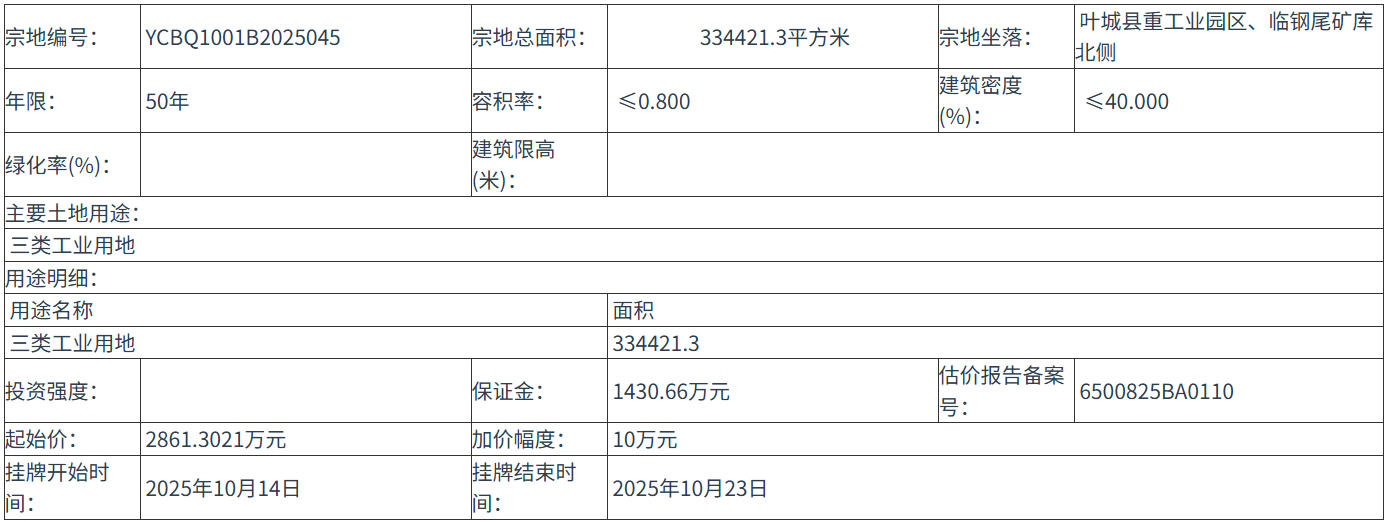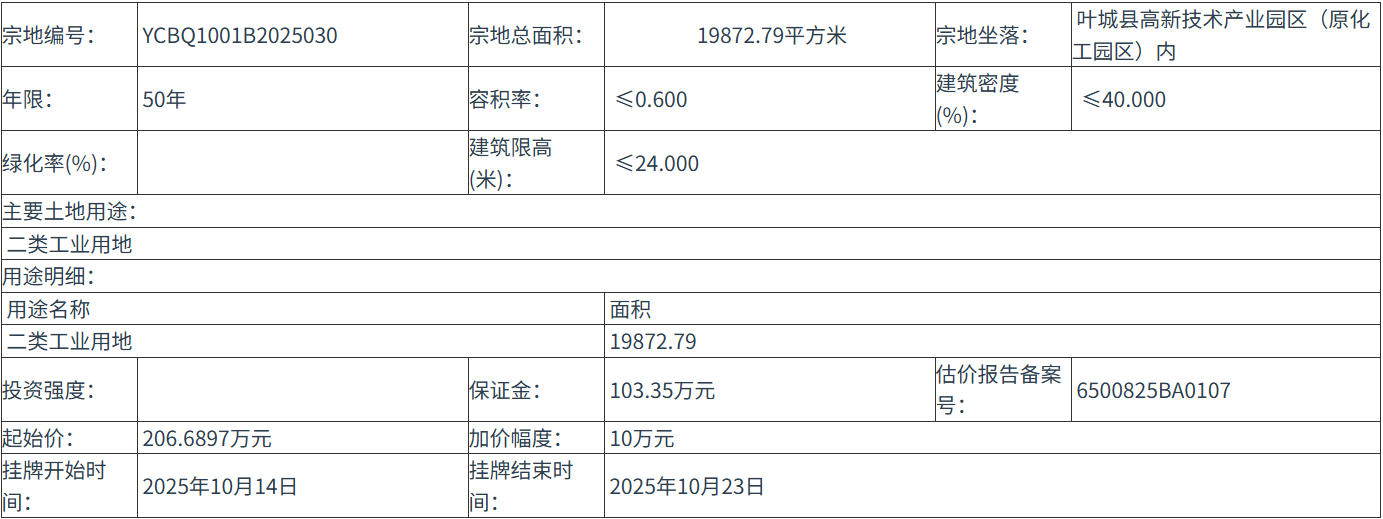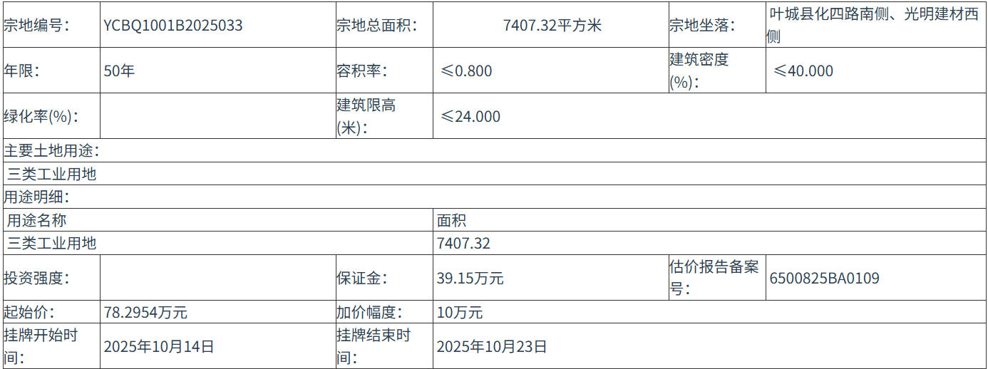 YCBQ1001B2025033 号地块:2025年10月14日 12时00分 至 2025年10月23日 18时00分;