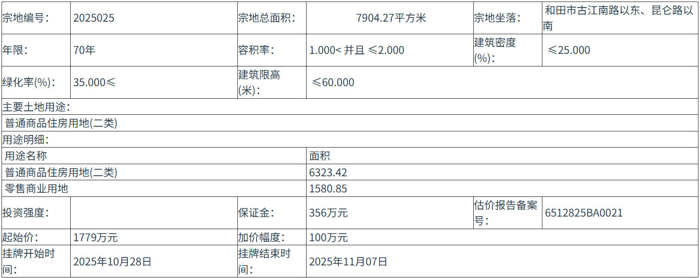2025025 号地块:2025年10月28日 10时00分 至 2025年11月07日 16时00分;