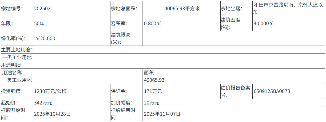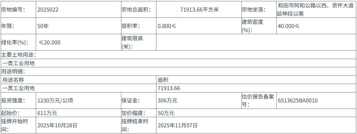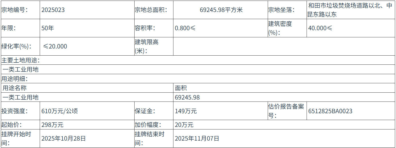 四、 本次挂牌出让的详细资料和具体要求,见挂牌出让文件。申请人可于 2025年09月30日 至 2025年11月05日 到 和田地区公共资源交易中心网站(http://36.107.230.199:8081/) 获取 挂牌出让 文件。