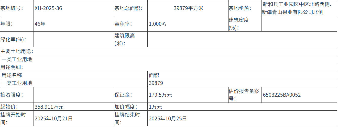 XH-2025-36 号地块:2025年10月21日 12时00分 至 2025年10月25日 12时00分;