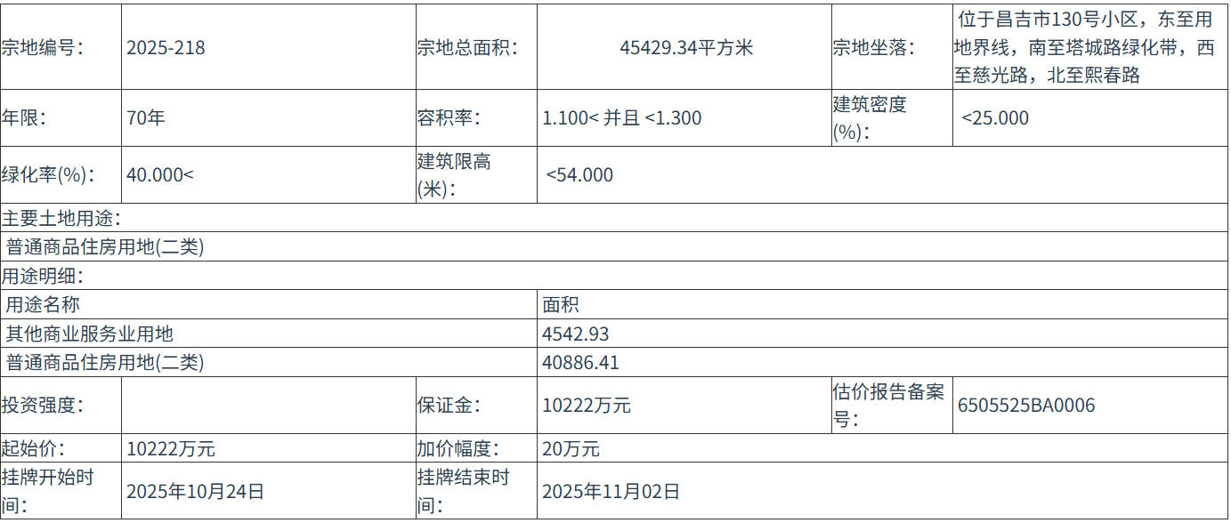 2025-218 号地块:2025年10月24日 10时00分 至 2025年11月02日 19时30分;