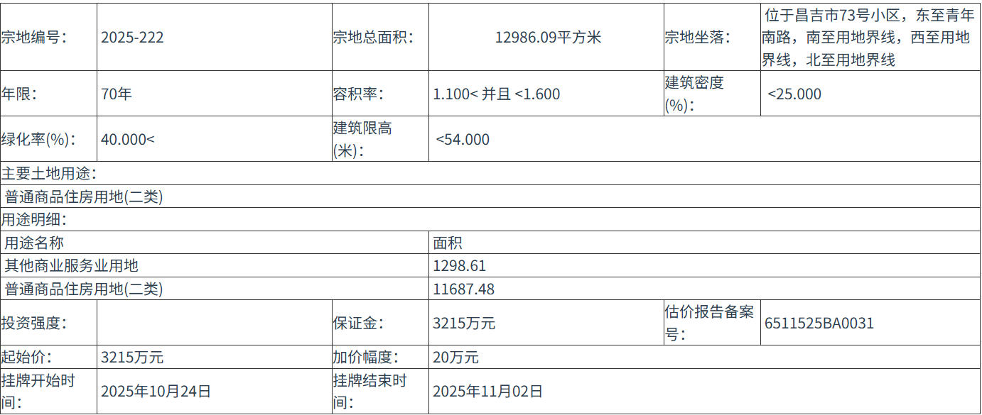 2025-222 号地块:2025年10月24日 10时00分 至 2025年11月02日 19时30分;