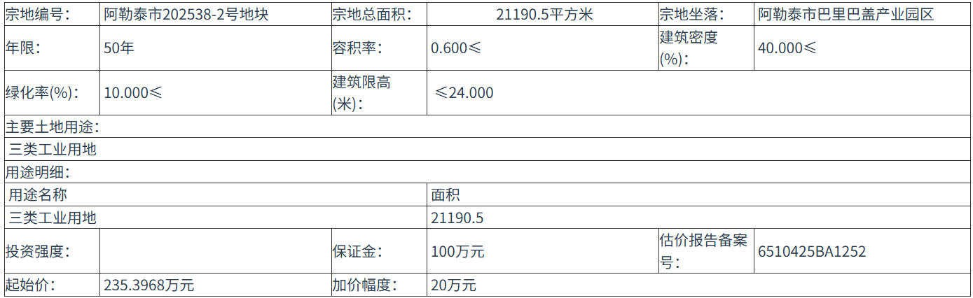 六、本次国有土地使用权拍卖活动定于在2025年10月29日 12时00分在阿勒泰地区公共资源交易网 进行。