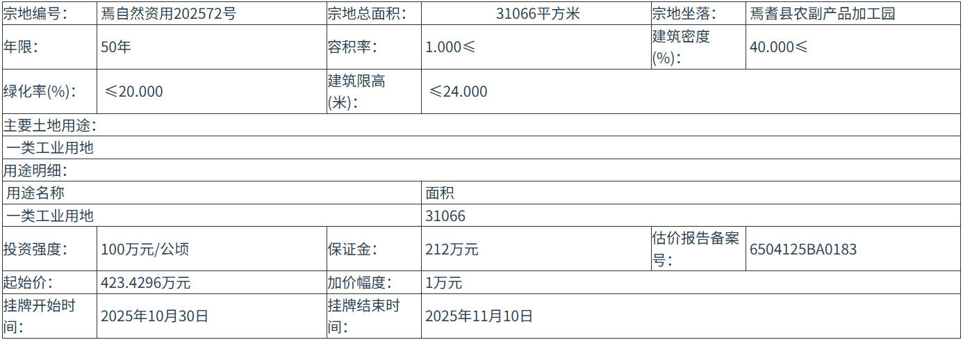 焉自然资用202572号 号地块:2025年10月30日 10时00分 至 2025年11月10日 12时00分;