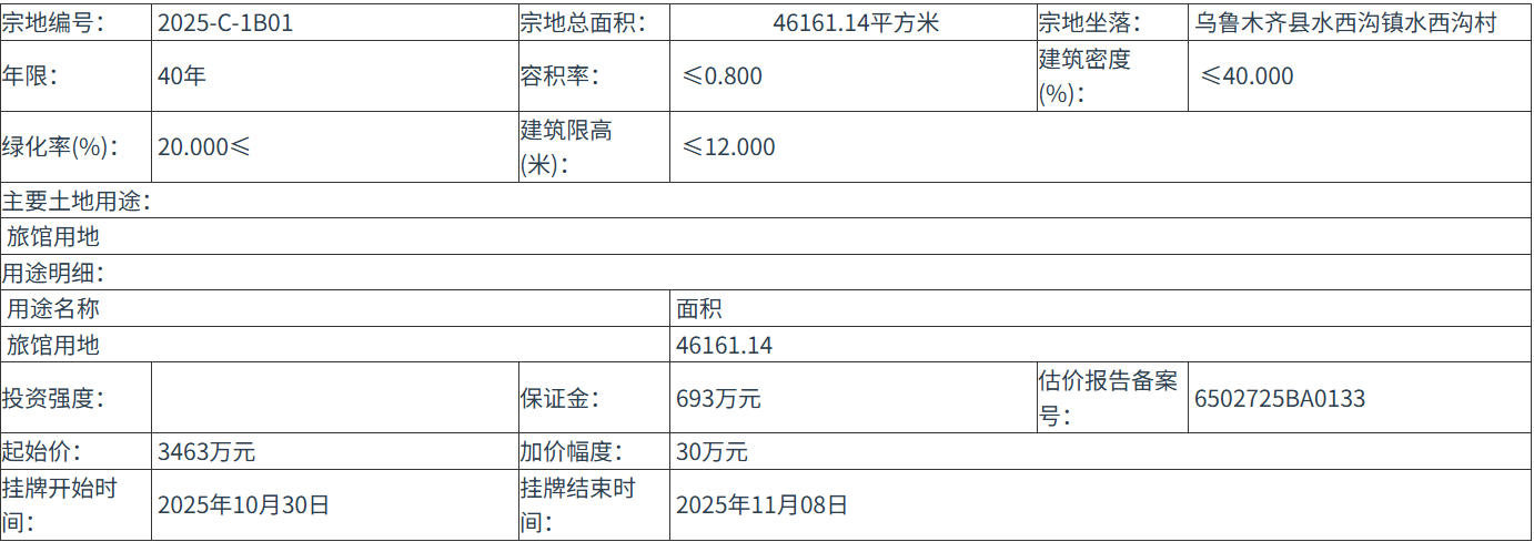 四、 本次挂牌出让的详细资料和具体要求,见挂牌出让文件。申请人可于 2025年10月10日 至 2025年10月29日 到 乌鲁木齐县自然资源局 获取 挂牌出让 文件。