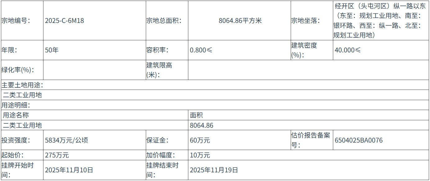 2025-C-6M18 号地块:2025年11月10日 11时00分 至 2025年11月19日 16时00分;