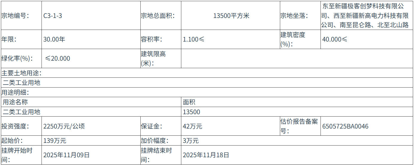 C3-1-3 号地块:2025年11月09日 10时00分 至 2025年11月18日 20时00分;