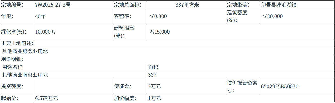 经伊吾县人民政府批准,伊吾县自然资源局决定以 拍卖出让 方式 3(幅) 地块的国有土地使用权。现将有关事项公告如下: