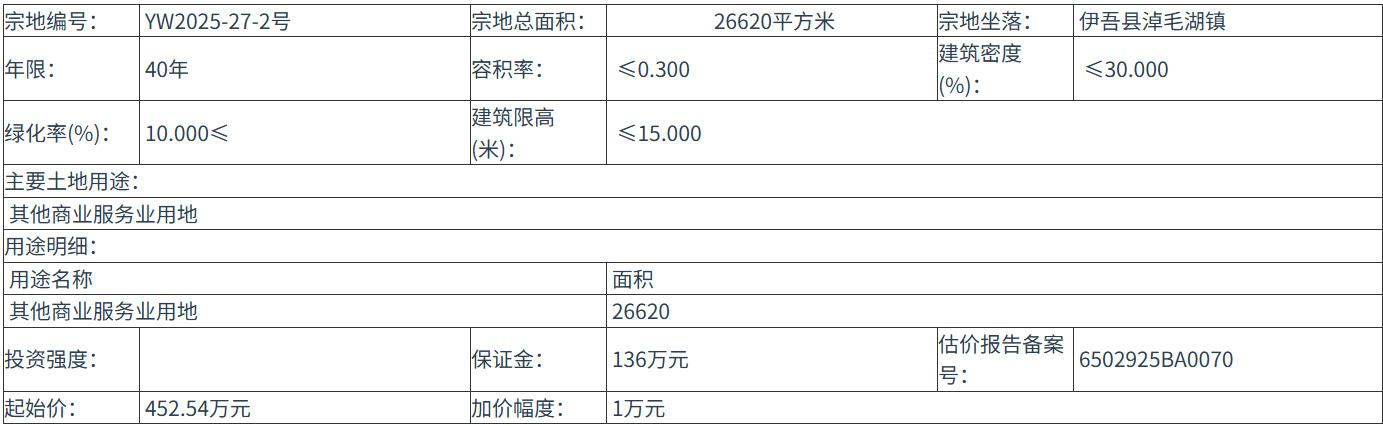 四、 本次拍卖出让的详细资料和具体要求,见拍卖出让文件。申请人可于 2025年10月23日 至 2025年11月11日 到 哈密市伊州区光明路2号原建设大厦13层 获取 拍卖出让 文件。