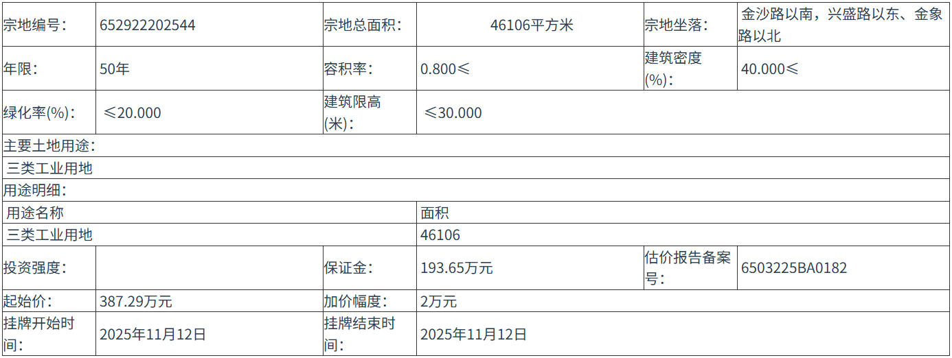 652922202544 号地块:2025年11月12日 08时00分 至 2025年11月12日 15时00分;