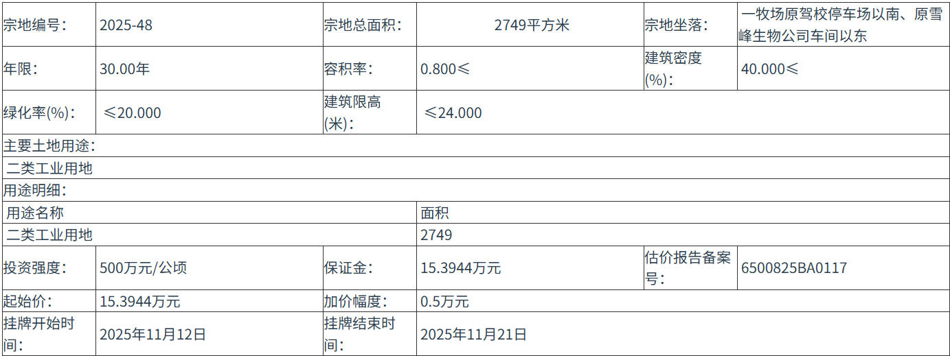2025-48 号地块:2025年11月12日 12时00分 至 2025年11月21日 12时00分;