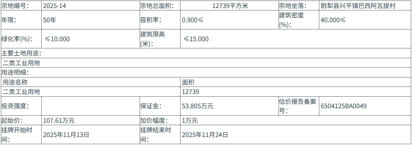 2025-14 号地块:2025年11月13日 10时00分 至 2025年11月24日 12时00分;