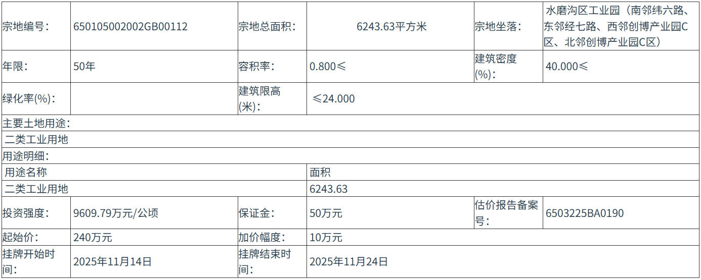 650105002002GB00112 号地块:2025年11月14日 11时00分 至 2025年11月24日 16时00分;