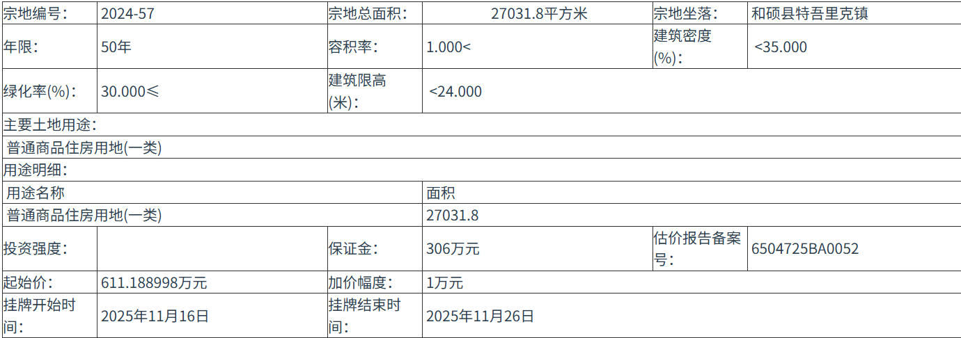 2024-57 号地块:2025年11月16日 10时00分 至 2025年11月26日 12时00分;