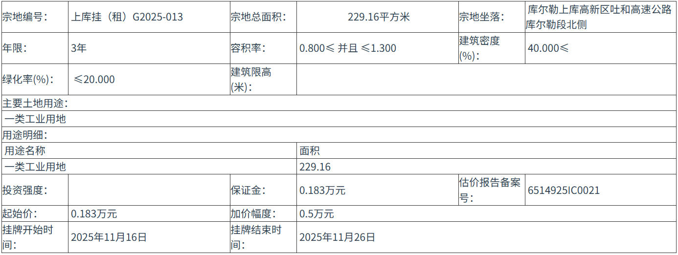 上库挂(租)G2025-013 号地块:2025年11月16日 10时00分 至 2025年11月26日 12时00分;