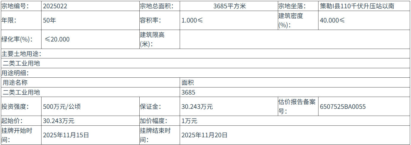 2025022 号地块:2025年11月15日 12时00分 至 2025年11月20日 12时00分;