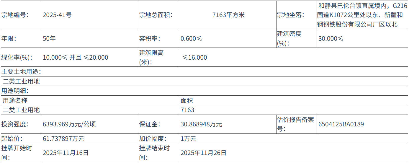 2025-41号 号地块:2025年11月16日 10时00分 至 2025年11月26日 12时00分;
