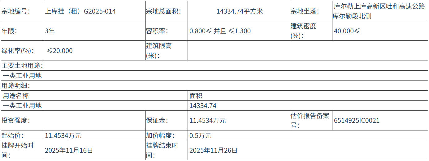 上库挂(租)G2025-014 号地块:2025年11月16日 10时00分 至 2025年11月26日 12时00分;