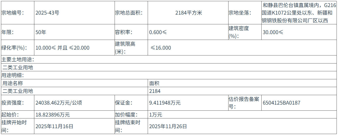 2025-43号 号地块:2025年11月16日 10时00分 至 2025年11月26日 12时00分;