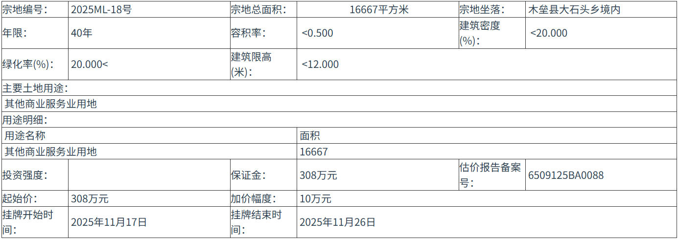 2025ML-18号 号地块:2025年11月17日 12时00分 至 2025年11月26日 12时00分;