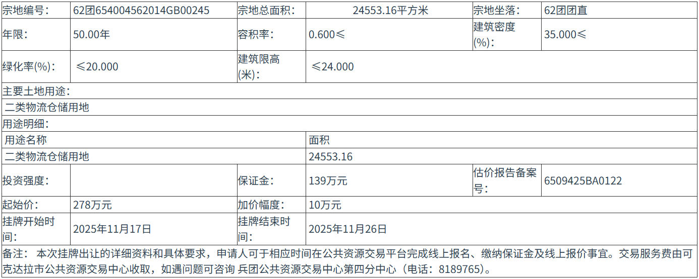 62团654004562014GB00245 号地块:2025年11月17日 10时00分 至 2025年11月26日 18时00分;