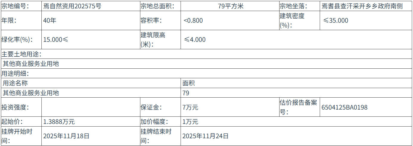 焉自然资用202575号 号地块:2025年11月18日 12时00分 至 2025年11月24日 12时00分;