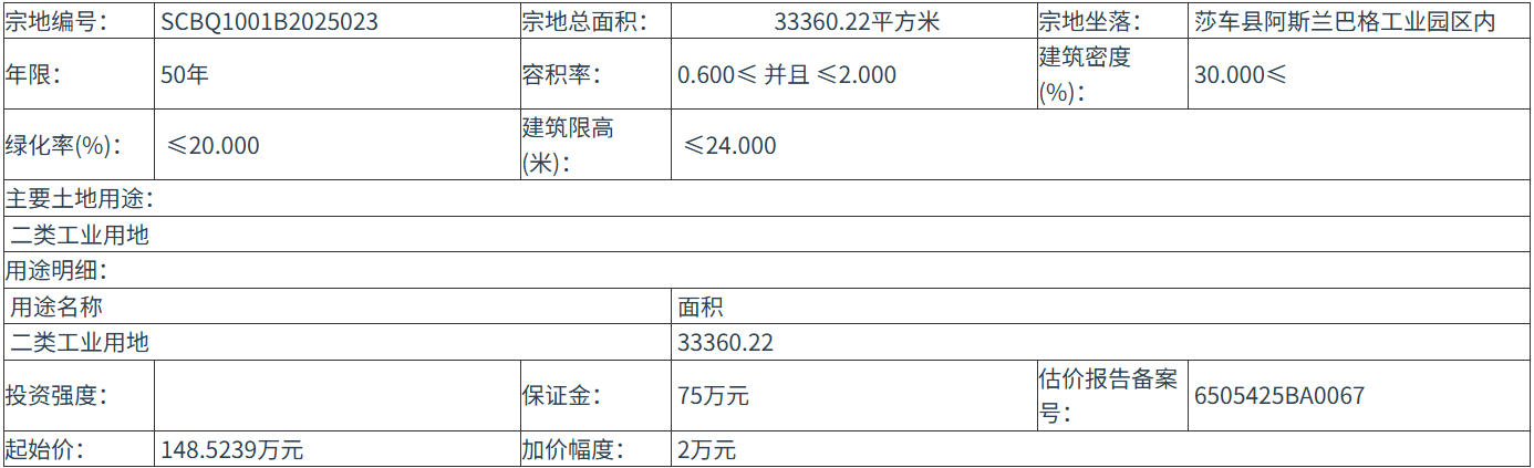 四、 本次拍卖出让的详细资料和具体要求,见拍卖出让文件。申请人可于 2025年10月31日 至 2025年11月19日 到 进入喀什公共交易中心网站下载拍卖出让文件 获取 拍卖出让 文件。