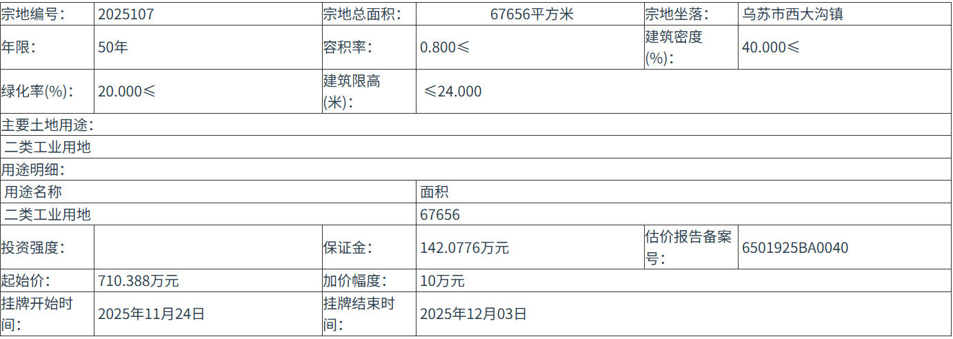 四、 本次挂牌出让的详细资料和具体要求,见挂牌出让文件。申请人可于 2025年11月04日 至 2025年11月23日 到 乌苏市自然资源局 获取 挂牌出让 文件。