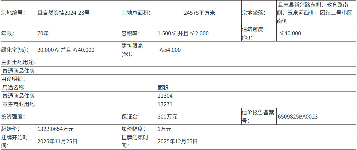 且自然资挂2024-23号 号地块:2025年11月25日 12时00分 至 2025年12月05日 12时00分;