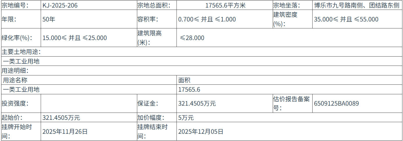 四、 本次挂牌出让的详细资料和具体要求,见挂牌出让文件。申请人可于 2025年11月06日 至 2025年11月25日 到 博乐市自然资源局 获取 挂牌出让 文件。