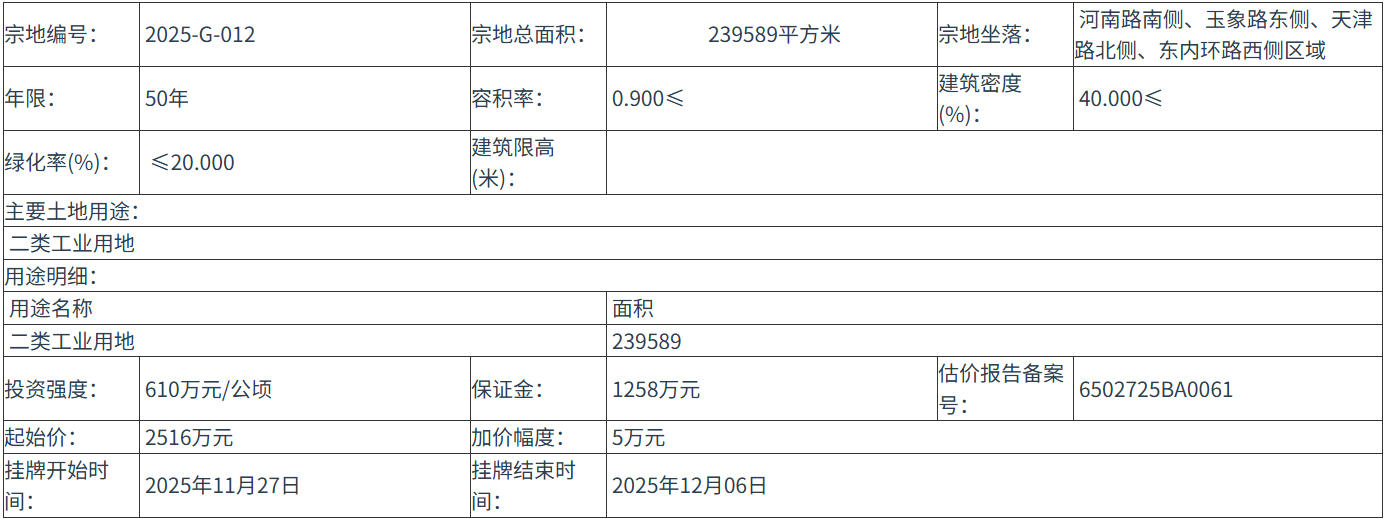 2025-G-012 号地块:2025年11月27日 10时00分 至 2025年12月06日 17时00分;