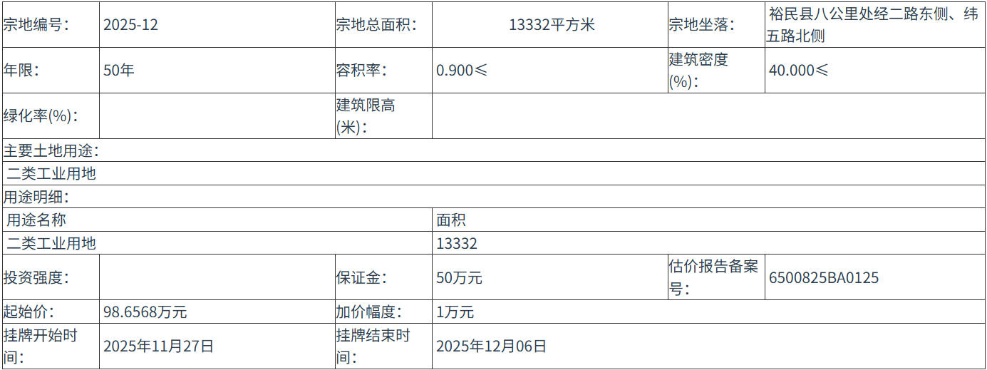 四、 本次挂牌出让的详细资料和具体要求,见挂牌出让文件。申请人可于 2025年11月07日 至 2025年11月26日 到 裕民县自然资源局 获取 挂牌出让 文件。