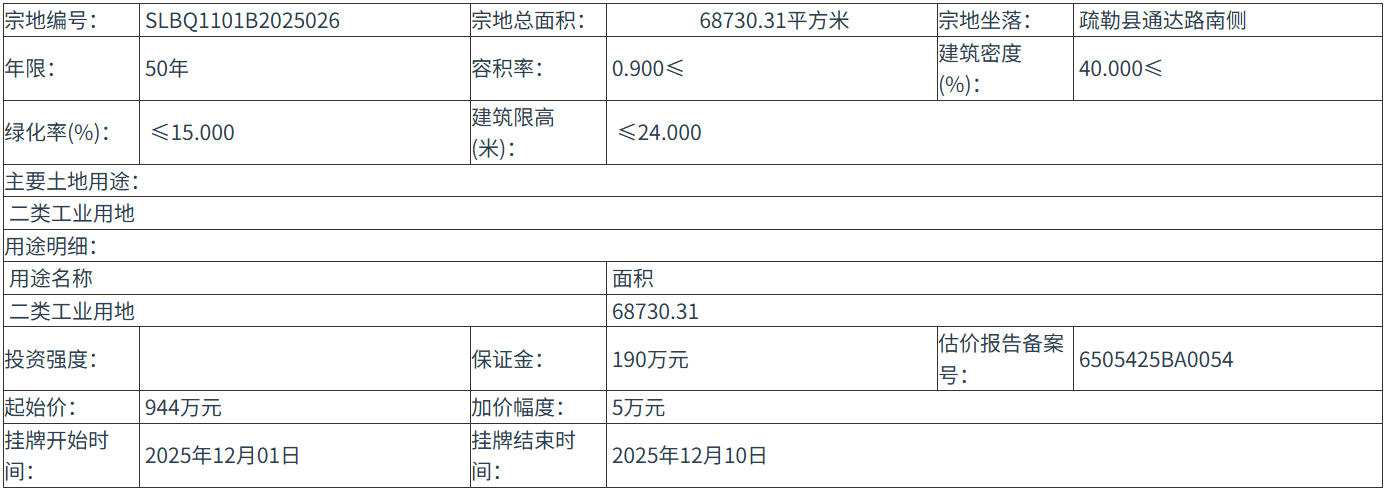 根据《关于贯彻落实<新疆维吾尔自治区关于促进民营经济发展壮大的若干政策措施>的责任分解方案》有市场需求的工业项目,可实行“带项目”招标拍卖挂牌供应。SLBQ1001B2025010号地上实施轻工建材及生物医药工贸类项目,SLBQ1101B2025026号地上实施生物医药类项目,竞买人拟实施的项目要符合以上要求。