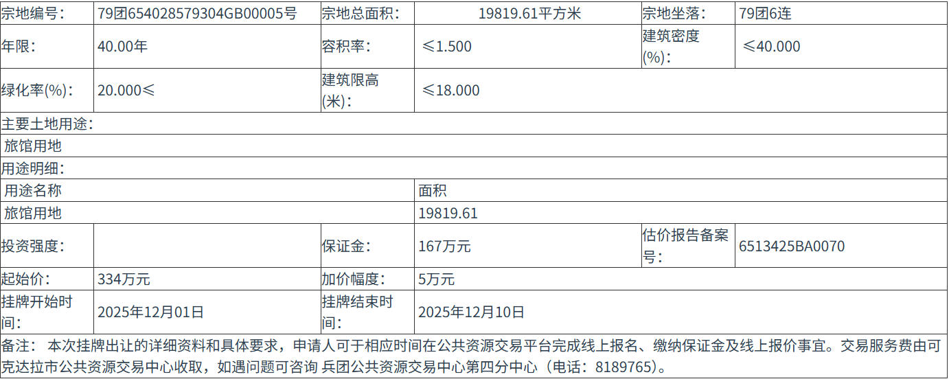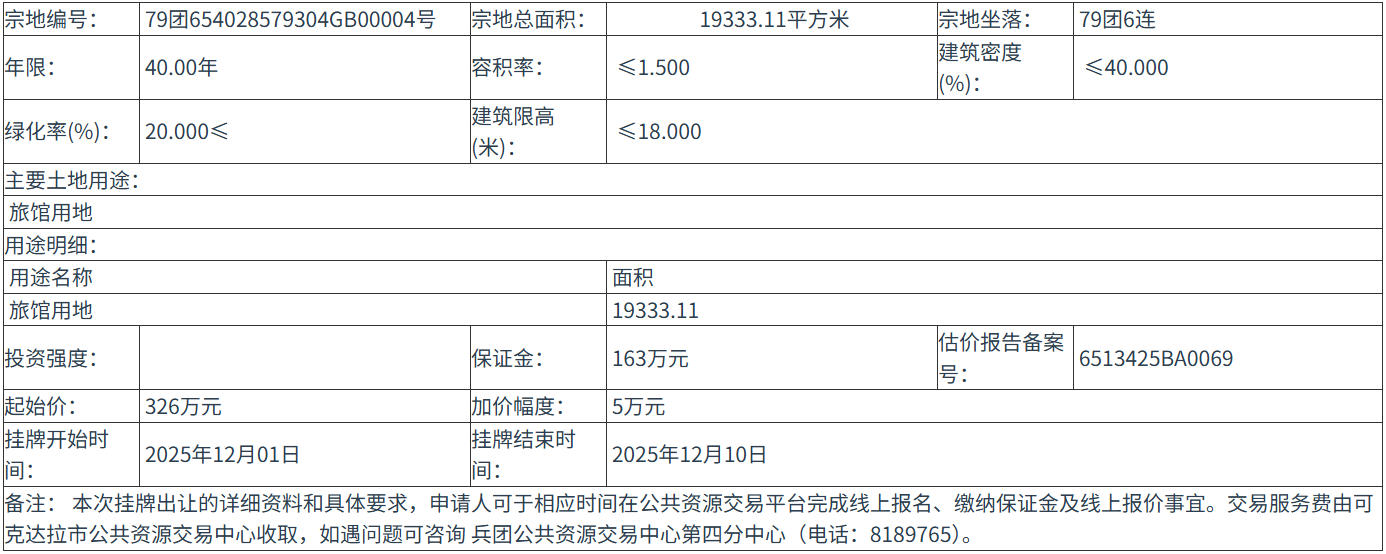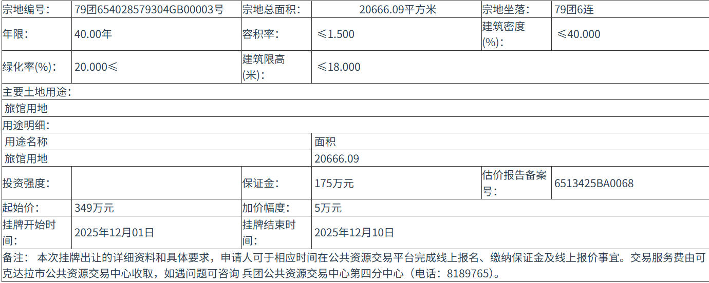 79团654028579304GB00003号 号地块:2025年12月01日 10时00分 至 2025年12月10日 18时00分;