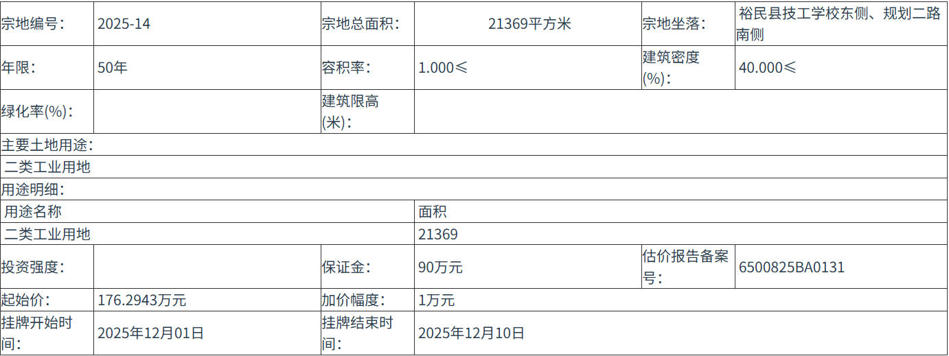 2025-14 号地块:2025年12月01日 12时00分 至 2025年12月10日 12时00分;