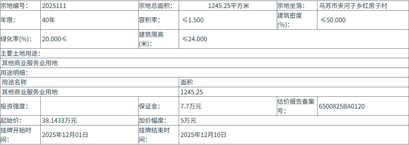 四、 本次挂牌出让的详细资料和具体要求,见挂牌出让文件。申请人可于 2025年11月11日 至 2025年11月30日 到 乌苏市自然资源局 获取 挂牌出让 文件。