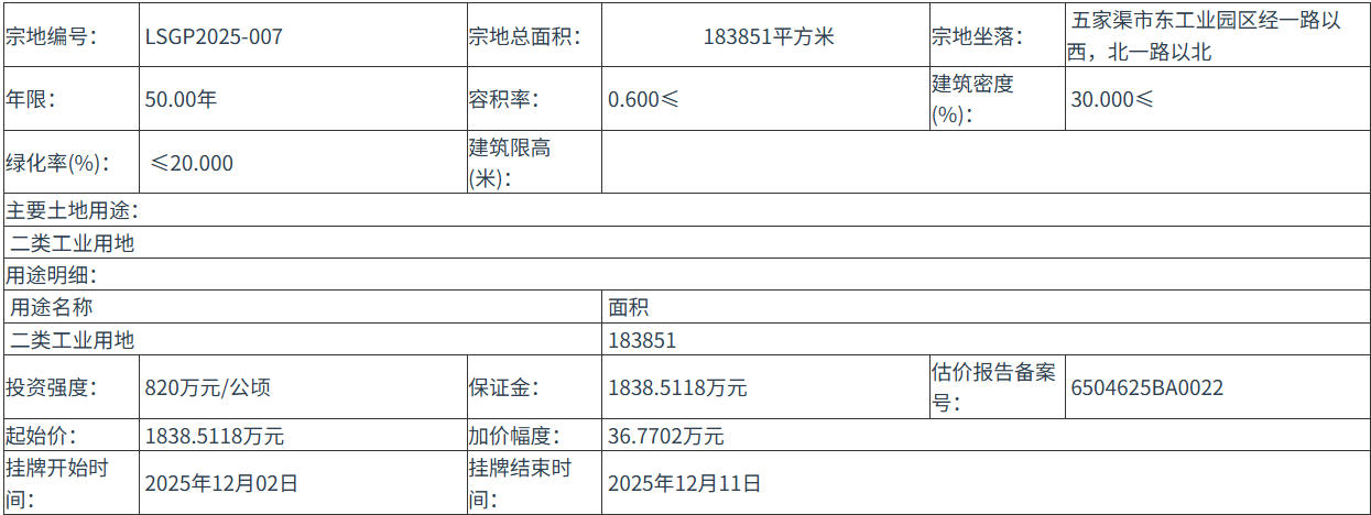 LSGP2025-007 号地块:2025年12月02日 10时00分 至 2025年12月11日 16时00分;