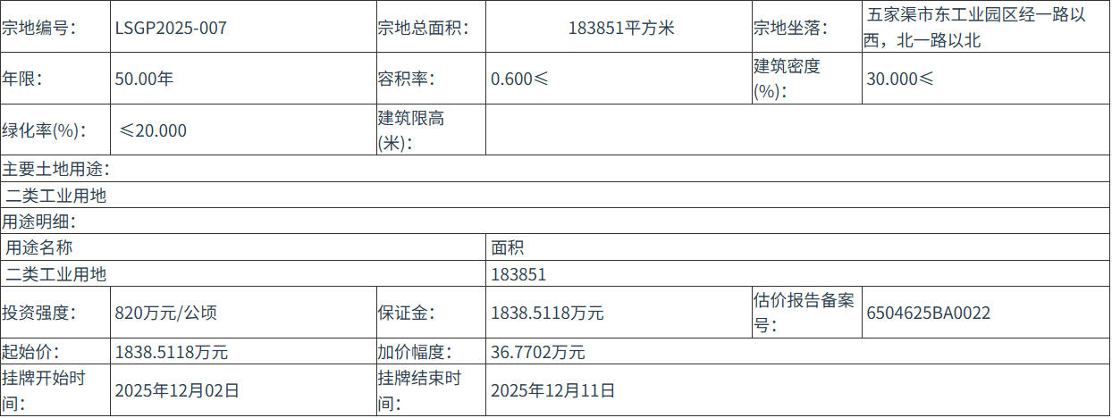 LSGP2025-007 号地块:2025年12月02日 10时00分 至 2025年12月11日 16时00分;