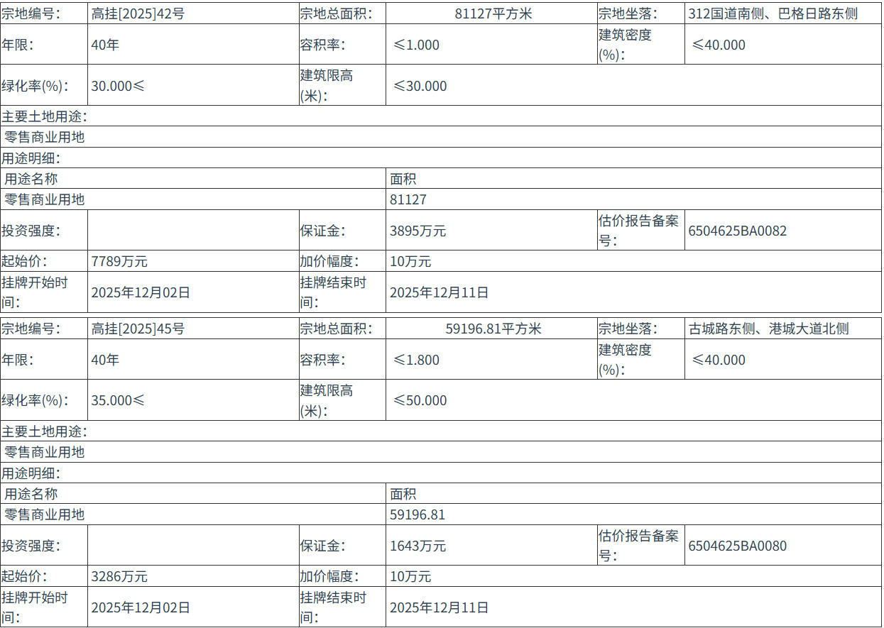 高挂[2025]42号 号地块:2025年12月02日 10时00分 至 2025年12月11日 16时00分;