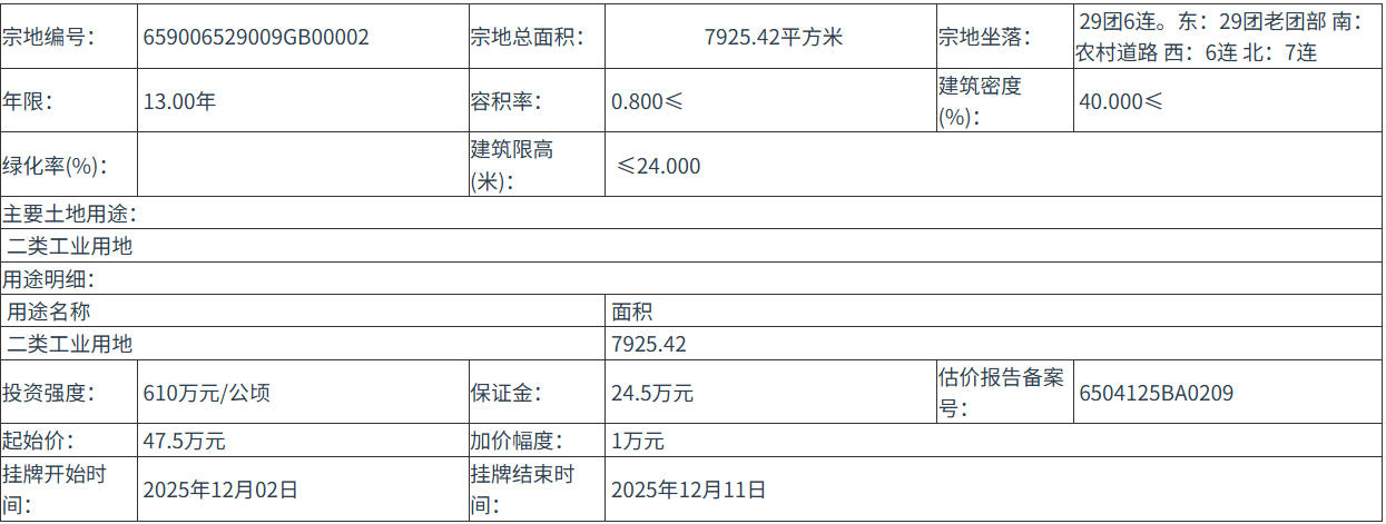 659006529009GB00002 号地块:2025年12月02日 10时00分 至 2025年12月11日 12时00分;