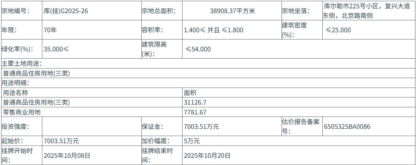 六、本次国有土地使用权挂牌活动 在 库尔勒市索克巴格路巴州住建大厦11楼1118室 进行。各地块挂牌时间分别为: