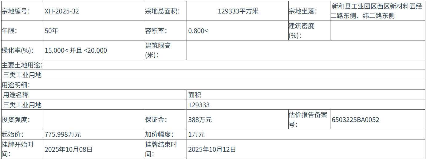 XH-2025-32 号地块:2025年10月08日 12时00分 至 2025年10月12日 12时00分;