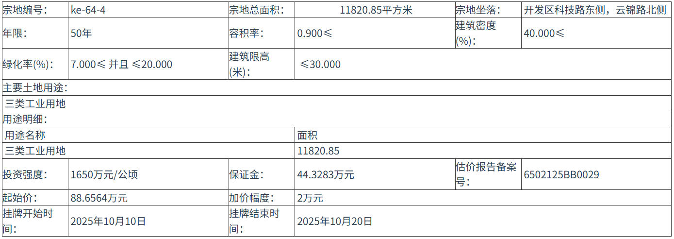 ke-64-4 号地块:2025年10月10日 10时00分 至 2025年10月20日 12时00分;