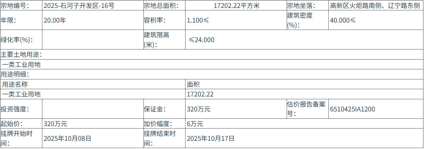 2025-石河子开发区-16号 号地块:2025年10月08日 10时00分 至 2025年10月17日 17时00分;