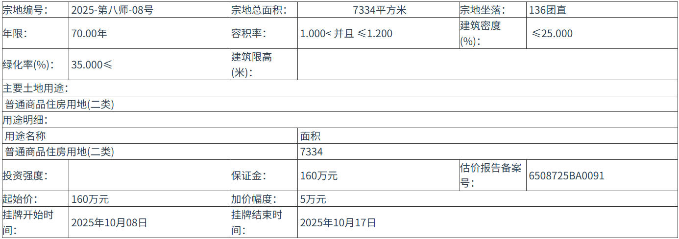 2025-第八师-08号 号地块:2025年10月08日 10时00分 至 2025年10月17日 17时00分;